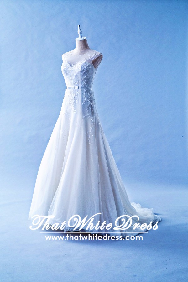 608LL07 LL Illusion neckline Zip back Trumpet Top Malaysia Wedding Dress Designer Rental