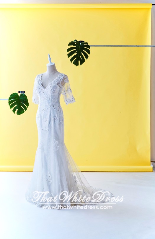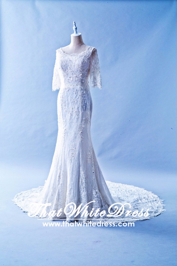 C405W002 Mermaid Trumpet Quarter Long Lace Sleeves Wedding Dresss Malaysia Baju Pengantin KL
