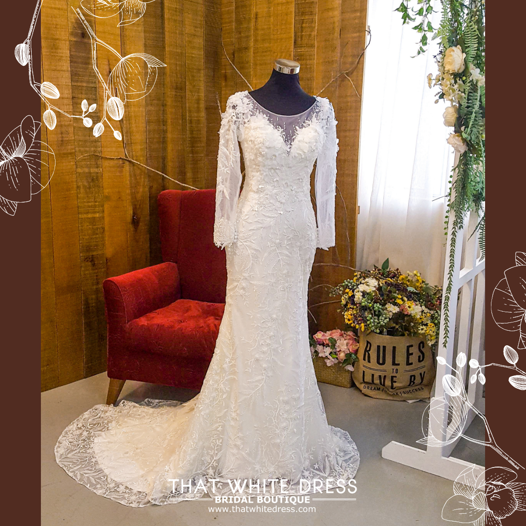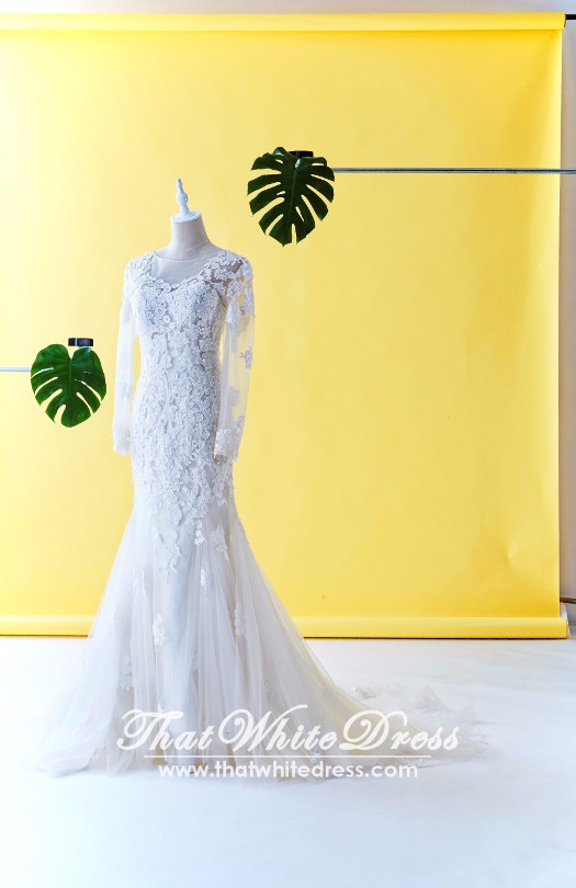 408W01 LL Long sleeves bateau boat neck Lace French Chantilly floral Lace Trumpet Church ROM Wedding Dress Rental Gaun Baju Pengantin Muslimah Kahwin Nikah Sanding Malaysia Kuala Lumpur Petaling Jaya