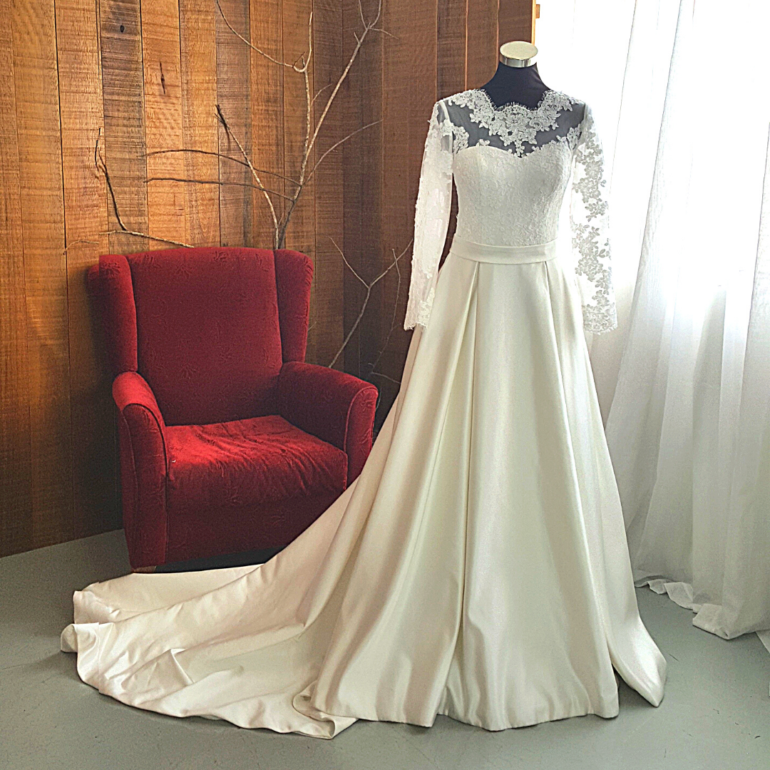 608XL01 XL Aimi Minimalist Long sleeves Duchess Satin French Alencon Corded Lace A line Princess Beading Wedding Dress Rental Gaun Baju Pengantin Muslimah Kahwin Nikah Sanding Malaysia Kuala Lumpur Petaling Jaya