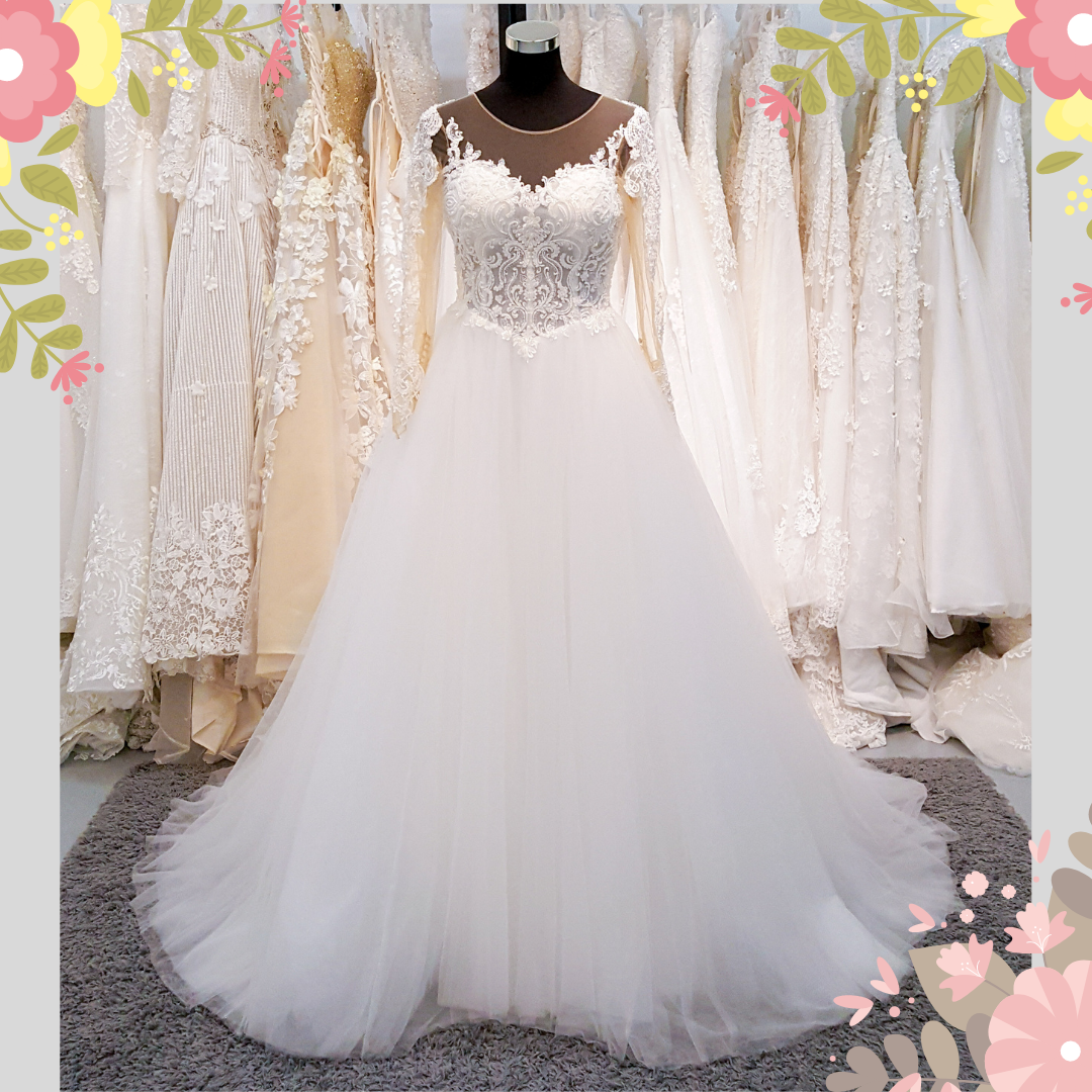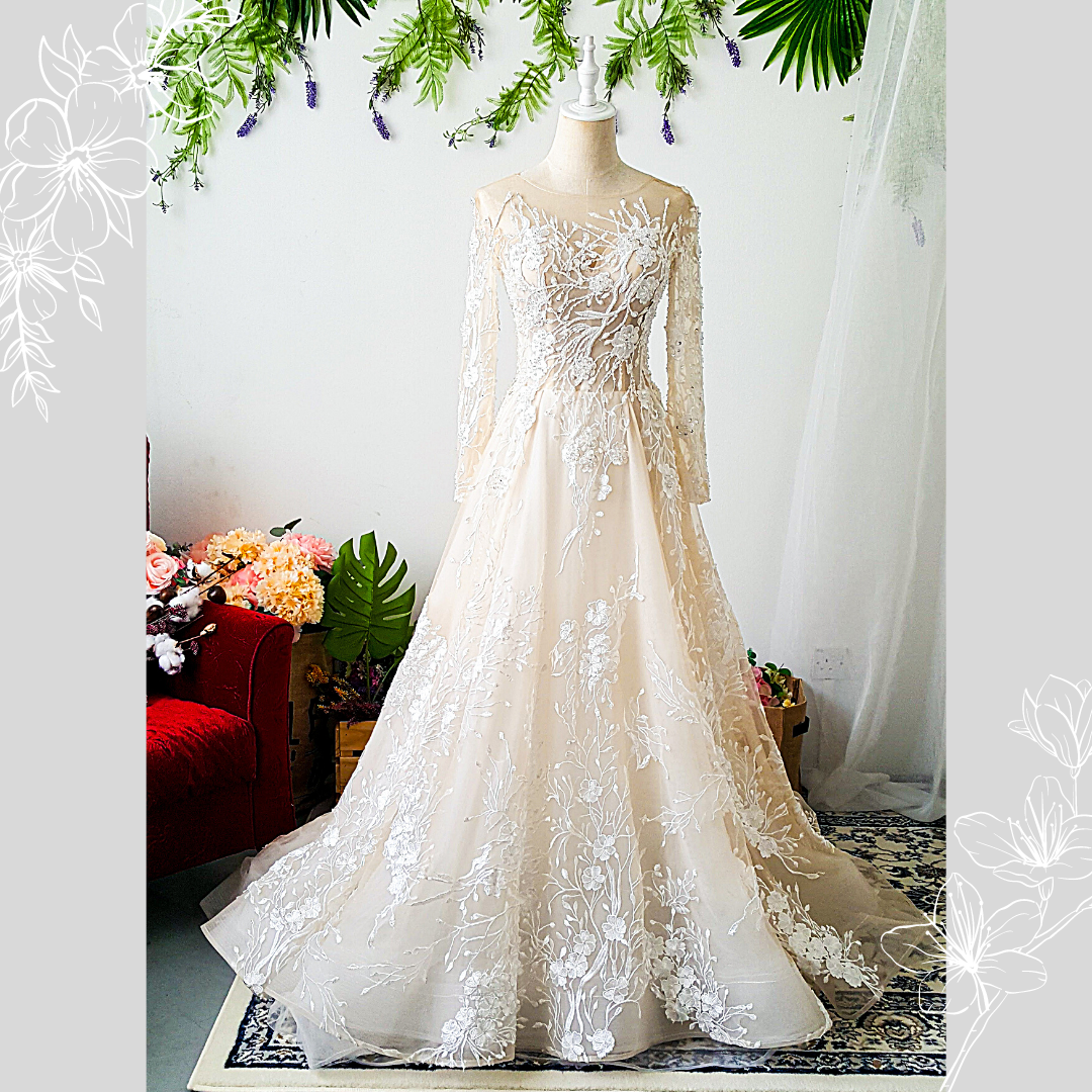 812BY03W01 Ellye Long sleeves illusion neck Lace French Chantilly Lace Garden Beach ROM Wedding Dress Rental Gaun Baju Pengantin Muslimah Kahwin Nikah Sanding Malaysia Kuala Lumpur Petaling Jaya