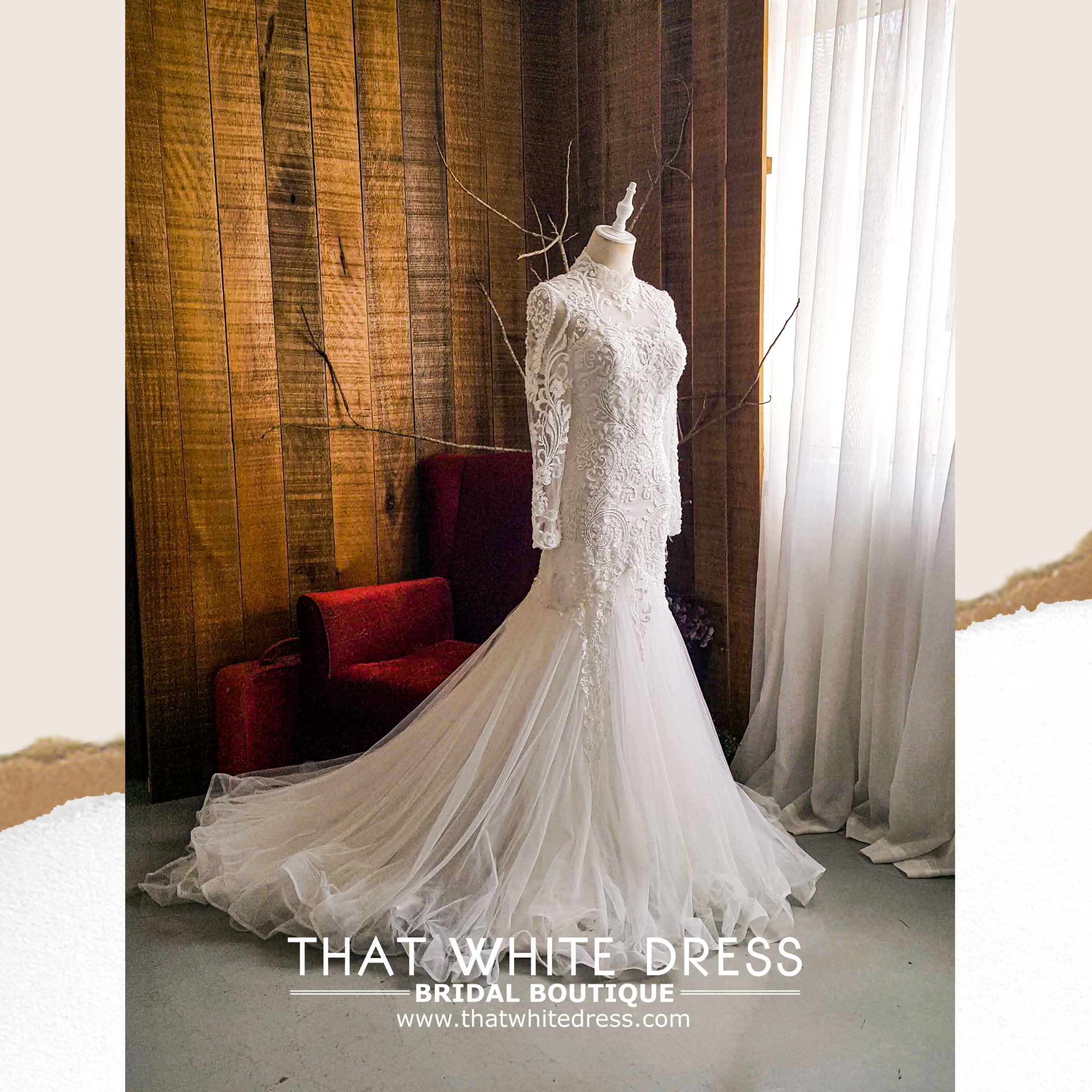 C71LLW02 LL Long Sleeves Geometry Trumpet Low V back Malaysia Muslimah wedding dress Kuala Lumpur