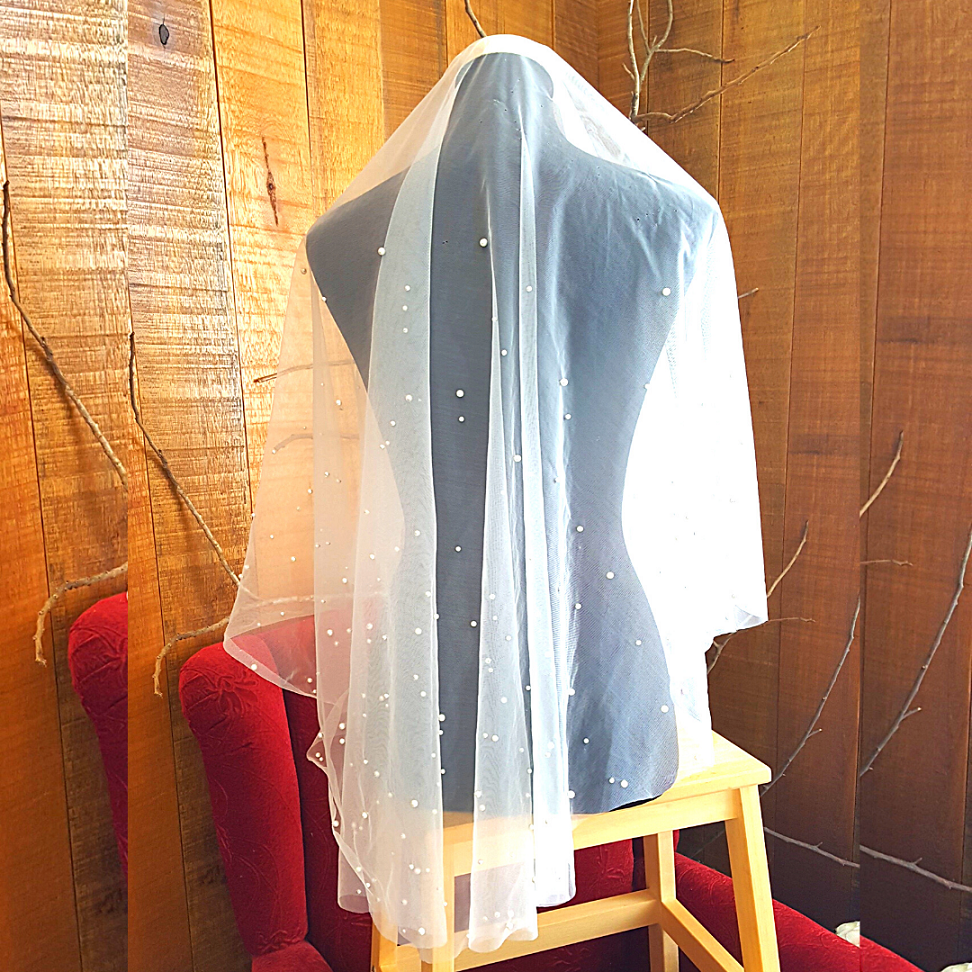 VTCMa003 TWD Premium Bride Wedding Veil Pearl Short Soft Tulle Net Front Clear Back Full Pearl no Comb/Veil Tudung Pengantin Nikah Sanding