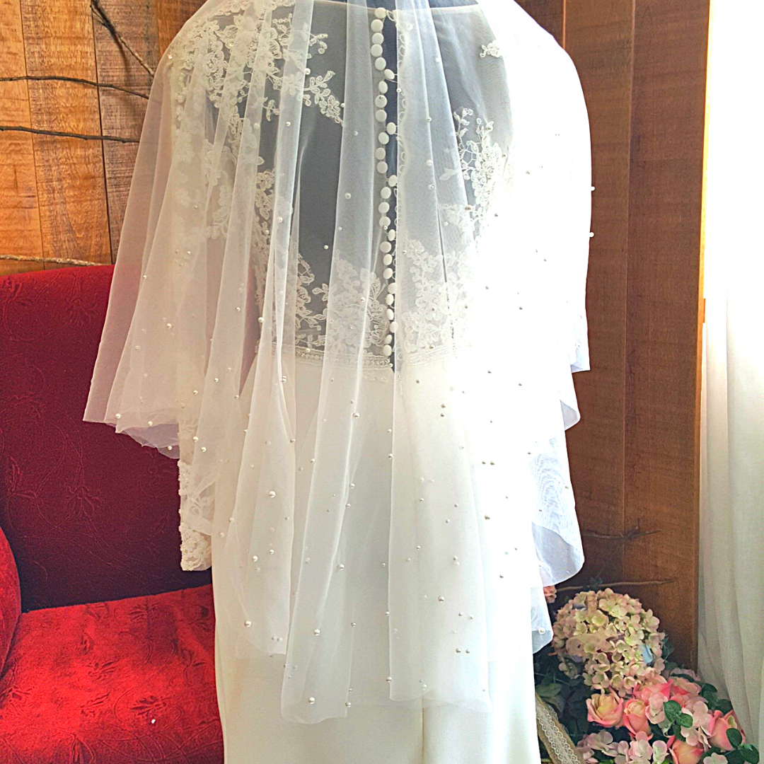 Bead work: Pearl beading at the back part of the veil. Front part has no beadings