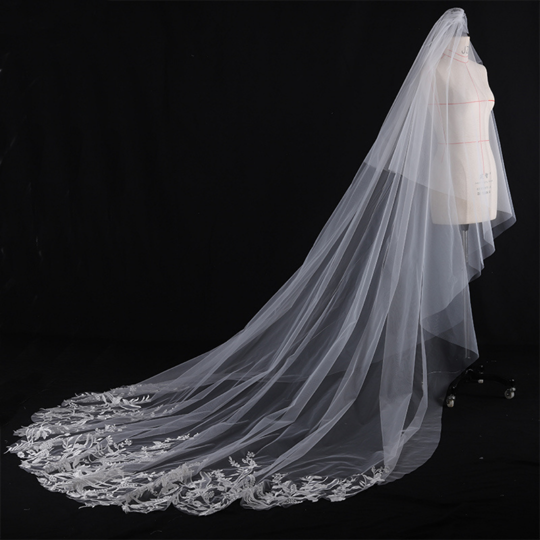 VP018c TWD Premium Bride Wedding Veil Floral Lace Soft Tulle Net Cathedral Length with Front Cover With Comb/Veil Tudung Pengantin Nikah Sanding
