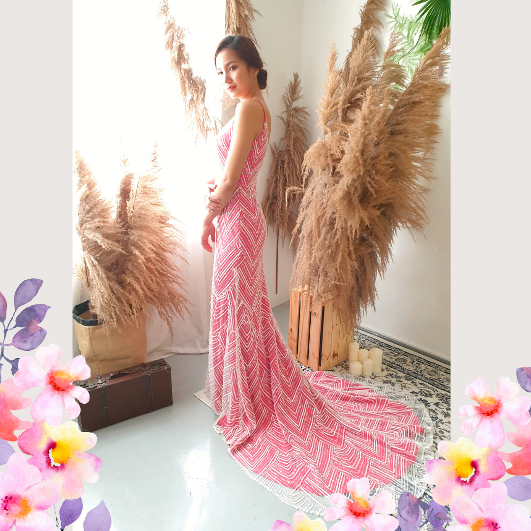 Evening Dress 906BY04E01 Jarina Red Spaghetti strap full sequin in white lace 1 Bride Wedding Event Reception Dinner Dress rental Malaysia