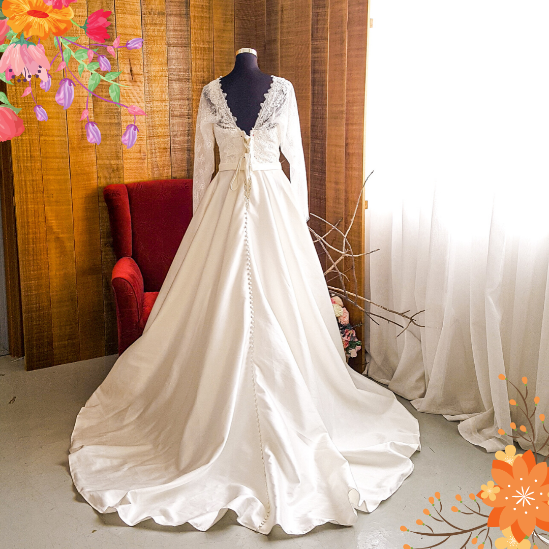 808BYWL02 Plus Kate Long Sleeves Illusion neck Satin Skirt b Plus Size wedding gown malaysia