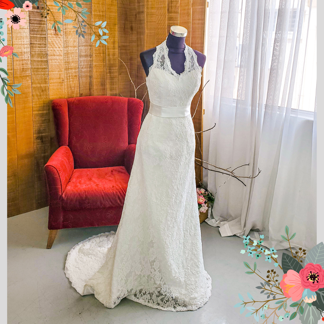 305W001 MR Halter Lace Aline a Trumpet Wedding Dress rental Malaysia