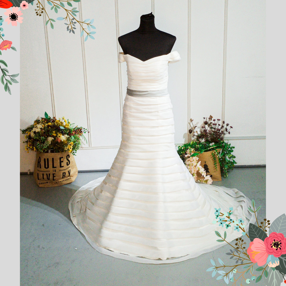 401W013 HH Off shoulder Tiered trumpet mermaid organza