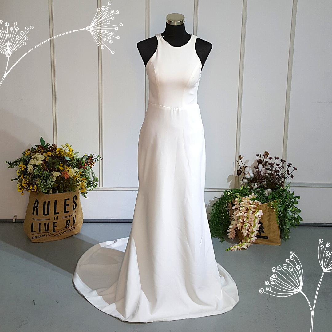 903YZW01 Emmie Halter Plain Crepe trumpet Wedding Dress rental