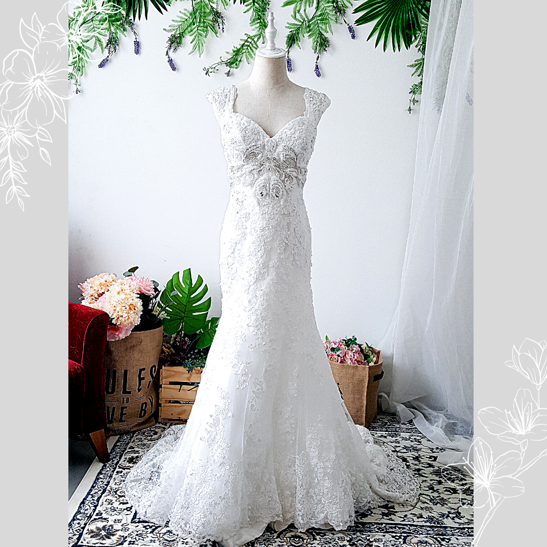 906BY04WL02 Marina Plus Cap Sleeves Trumpet Floral Alencon
