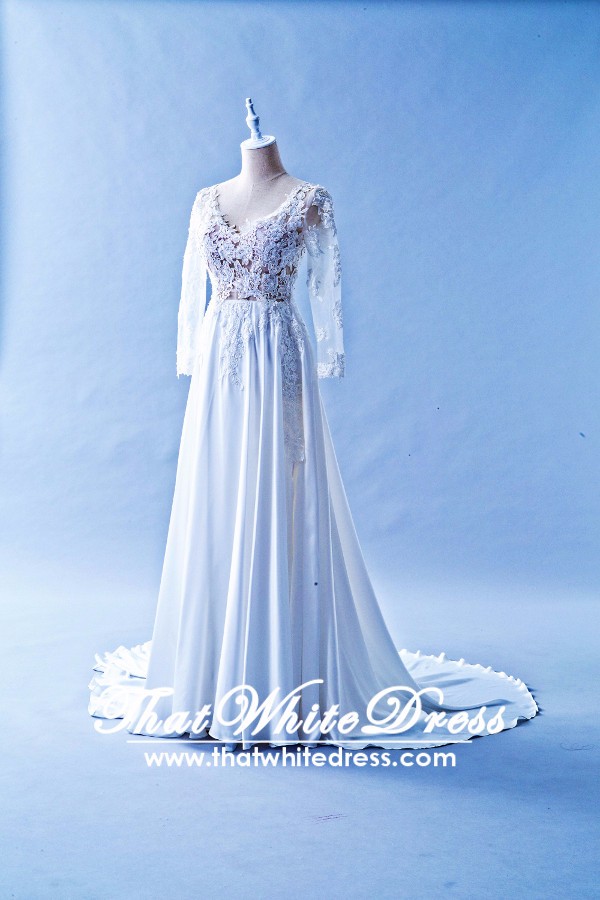 C608LL05 LL Lilian Long Sleeves Berta Bride Silk Chiffon Wedding Dresss Malaysia Baju Pengantin KL