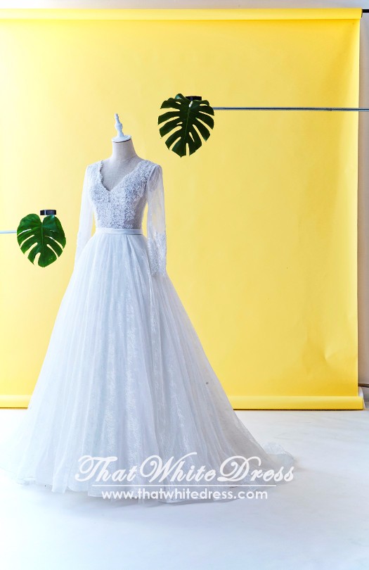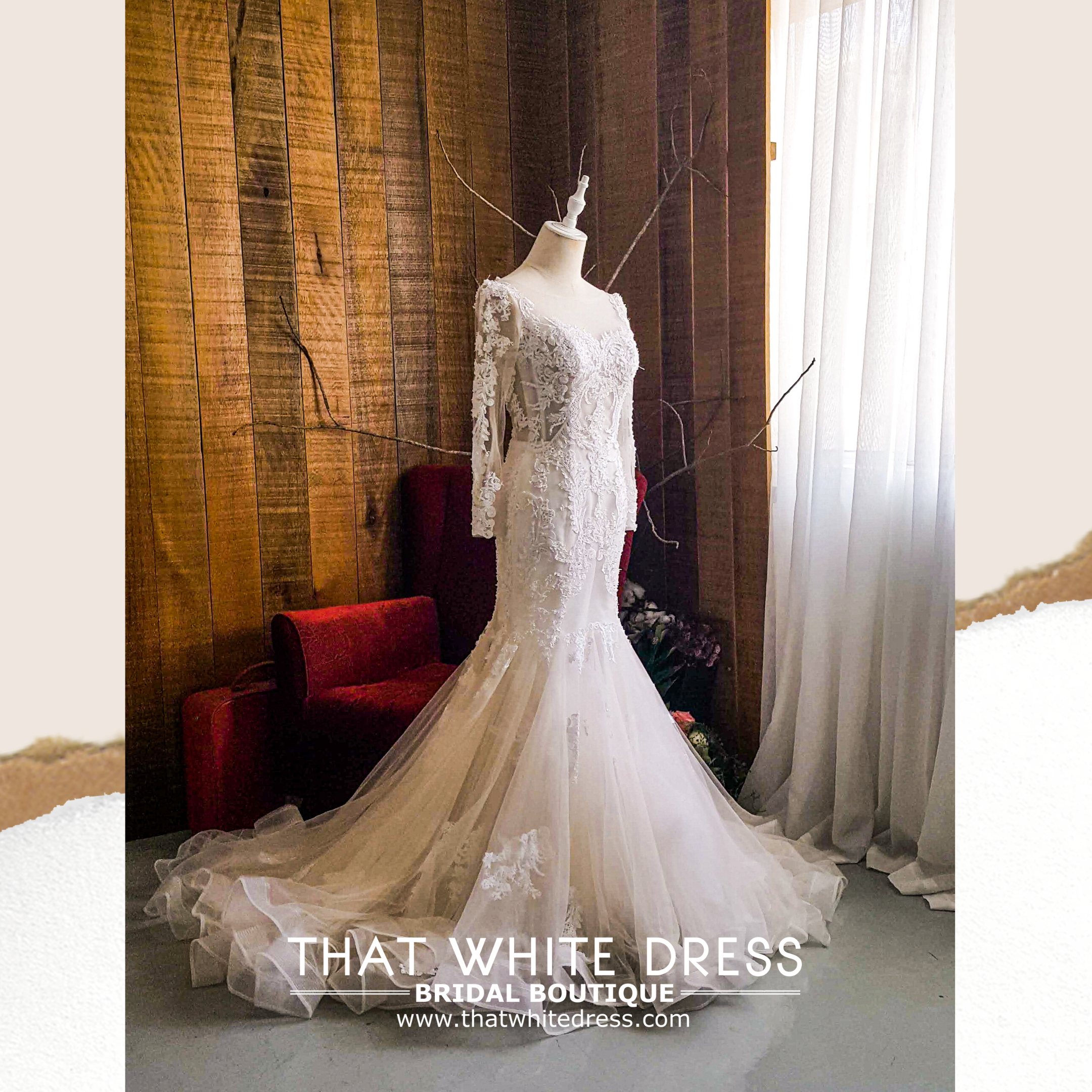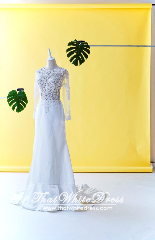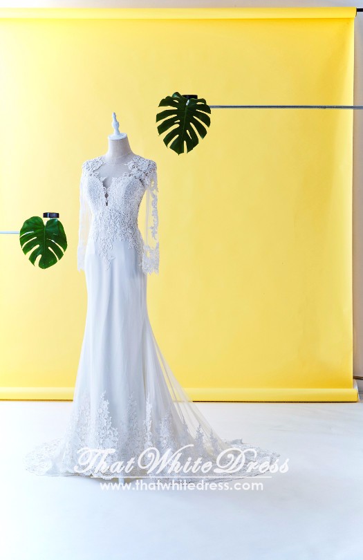 C71LLW02 LL Long Sleeves Geometry Trumpet Low V back Malaysia Muslimah wedding dress Kuala Lumpur