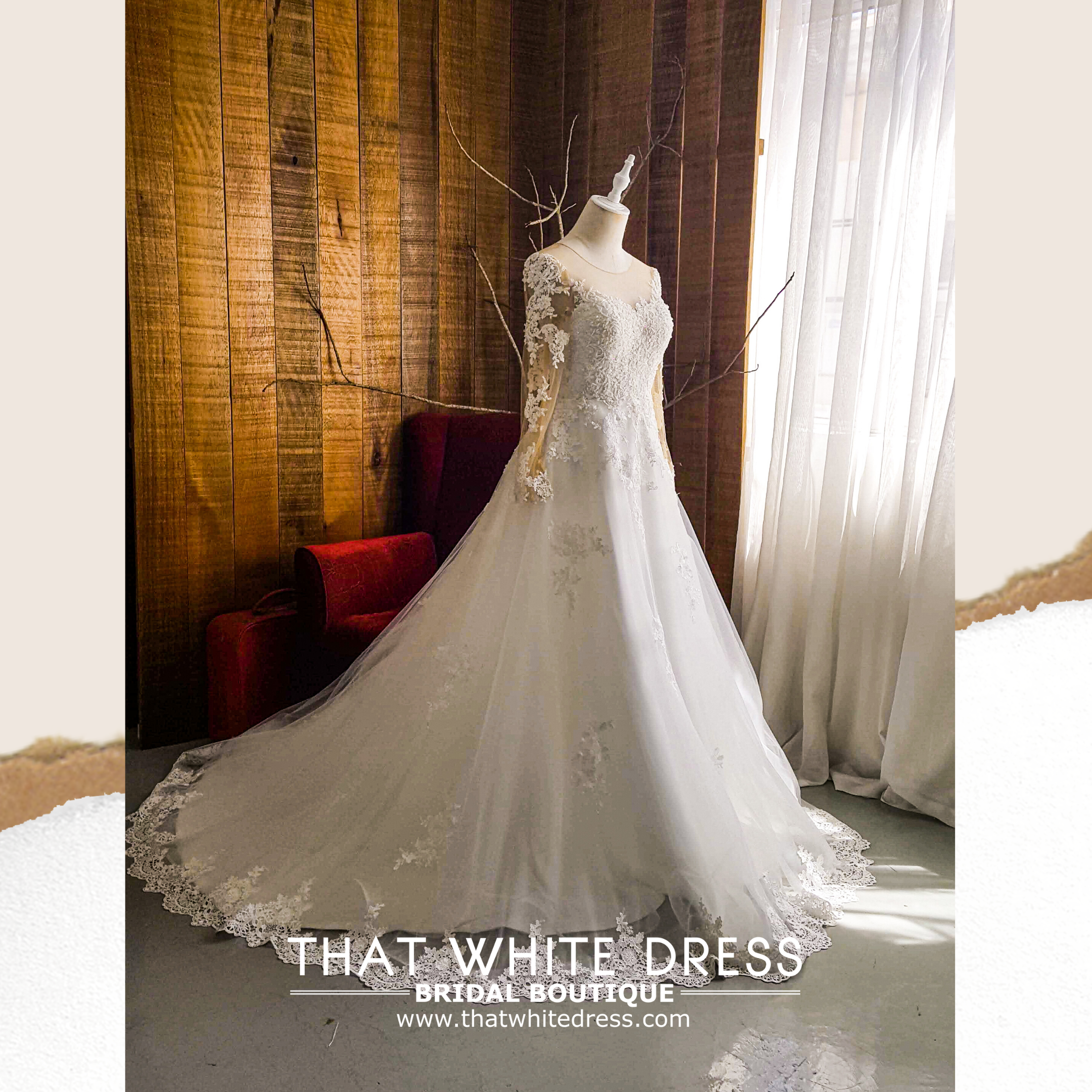 C610CCW01 Long Sleeves Illusion Satin button back Malaysia Baju Pengantin Baju Nikah Kahwin