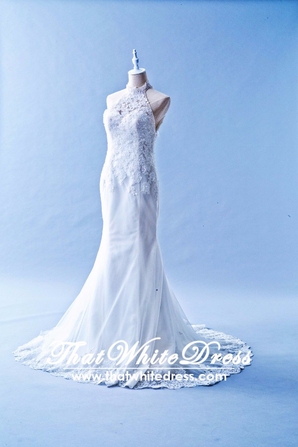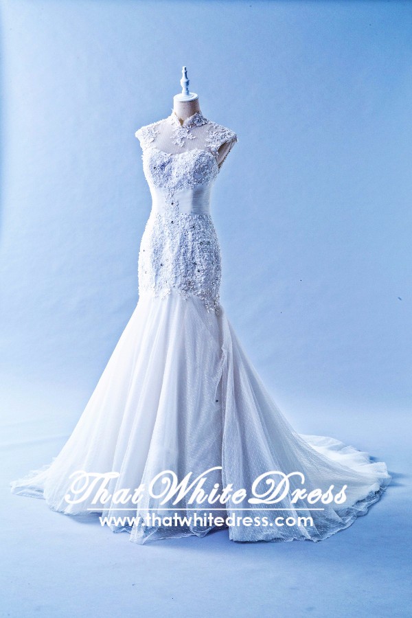 73TYW01 Oriental Collar Trumpet Ivory Wedding Dress Malaysia Rental Custom