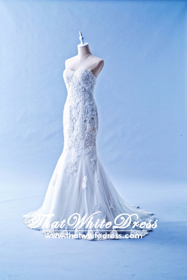 401W004 Sweet Heart Mermaid French Lace Vintage Tube single tier Wedding Dress with Long Train Malaysia