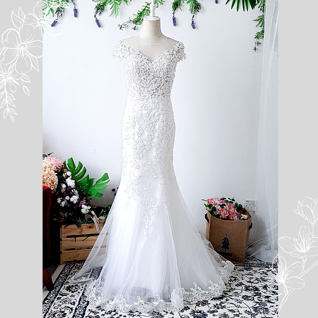 77LLW01 LL Amber Illusion Boat Neckline Trumpet Petite Bride Wedding Gown Rental Malaysia Kuala Lumpur Petaling Jaya