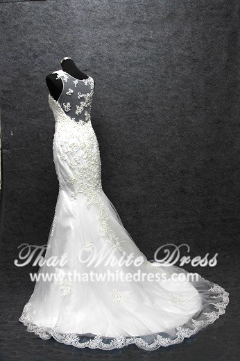 Designer wedding Gown S1412W16 LL Illusion back asymetrical lace  Berta Bride