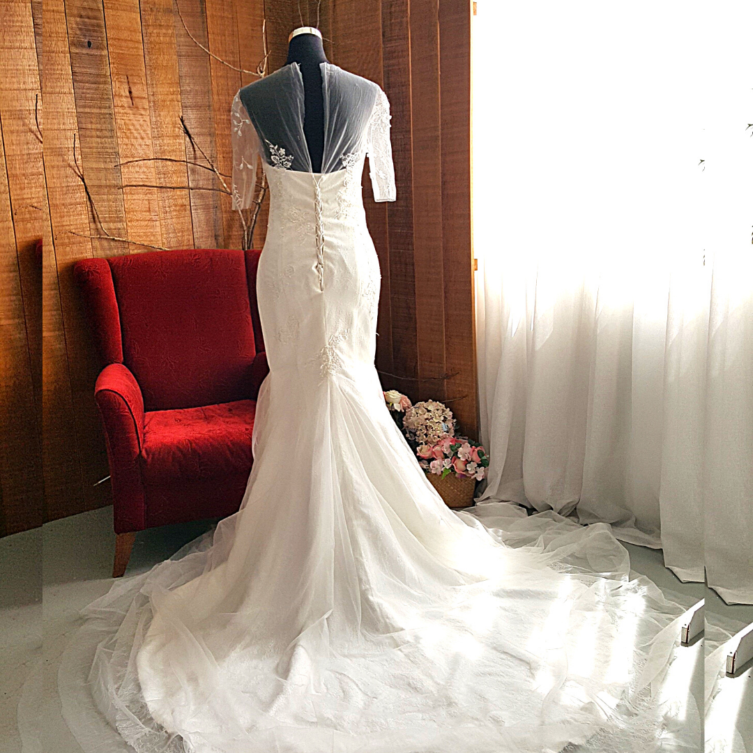 French Chantilly Lace 3/4 Sleeves Wedding Dress Mermaid Trumpet Baju pengantin Kahwin Malaysia Muslimah bride Sanding Nikah