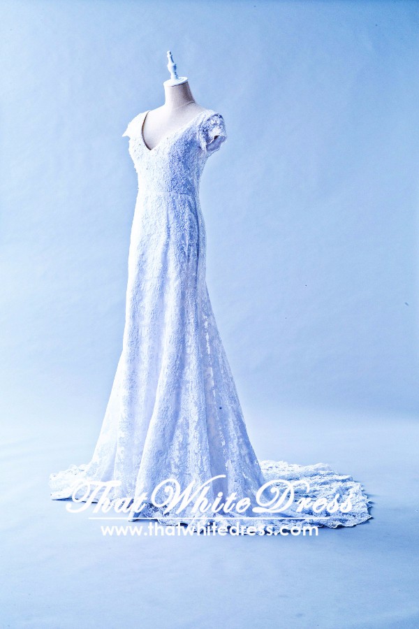 Wedding Dress Style: Cap sleeves with Deep V neckline