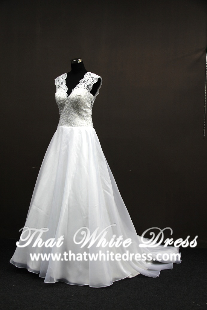 305W008 Aline Vneck Lace Wedding Dress Designer Malaysia