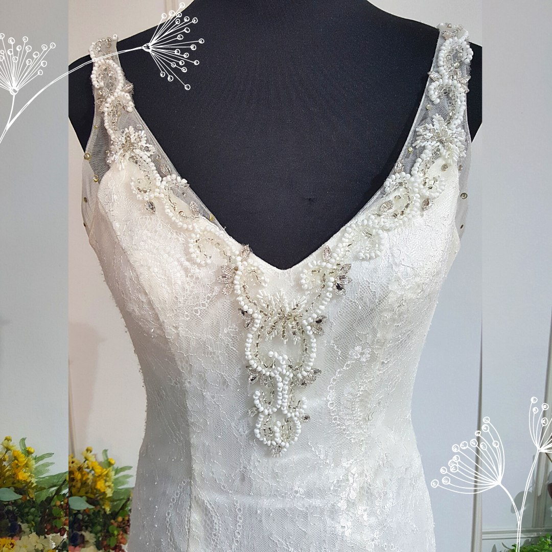 Featuring a beautiful full lace train that is stunning in photoshoot!