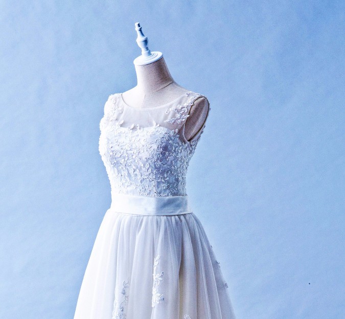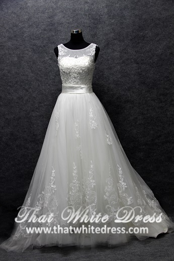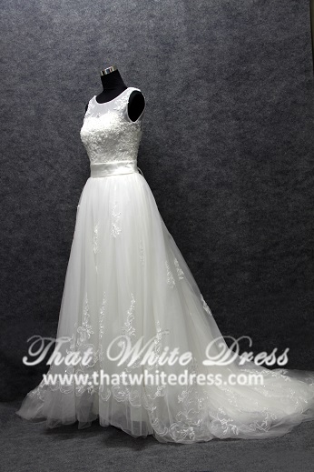401W017 SSY Sleaveless A Line Illusioned Neckline Top Malaysia Wedding Dress Designer Rental Rosa Clara