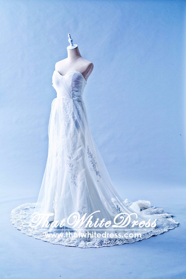 401W021 MR Trumpet Sheer Lace Pleated tulle Bodice Wedding Dress Custom Make Malaysia