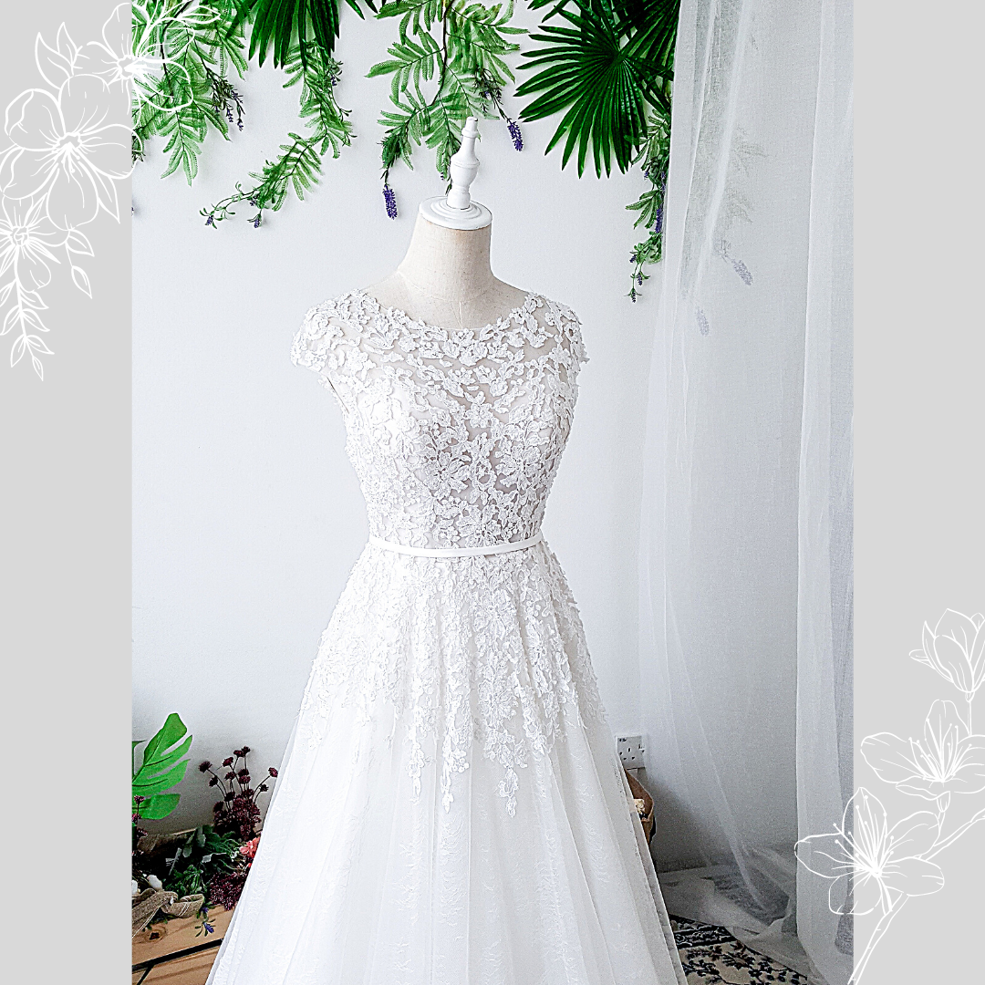 801LLW01 Amyra Illusion neckline guipure lace A line bridal gown designer Malaysia pengantin kahwin gaun sewa Malaysia